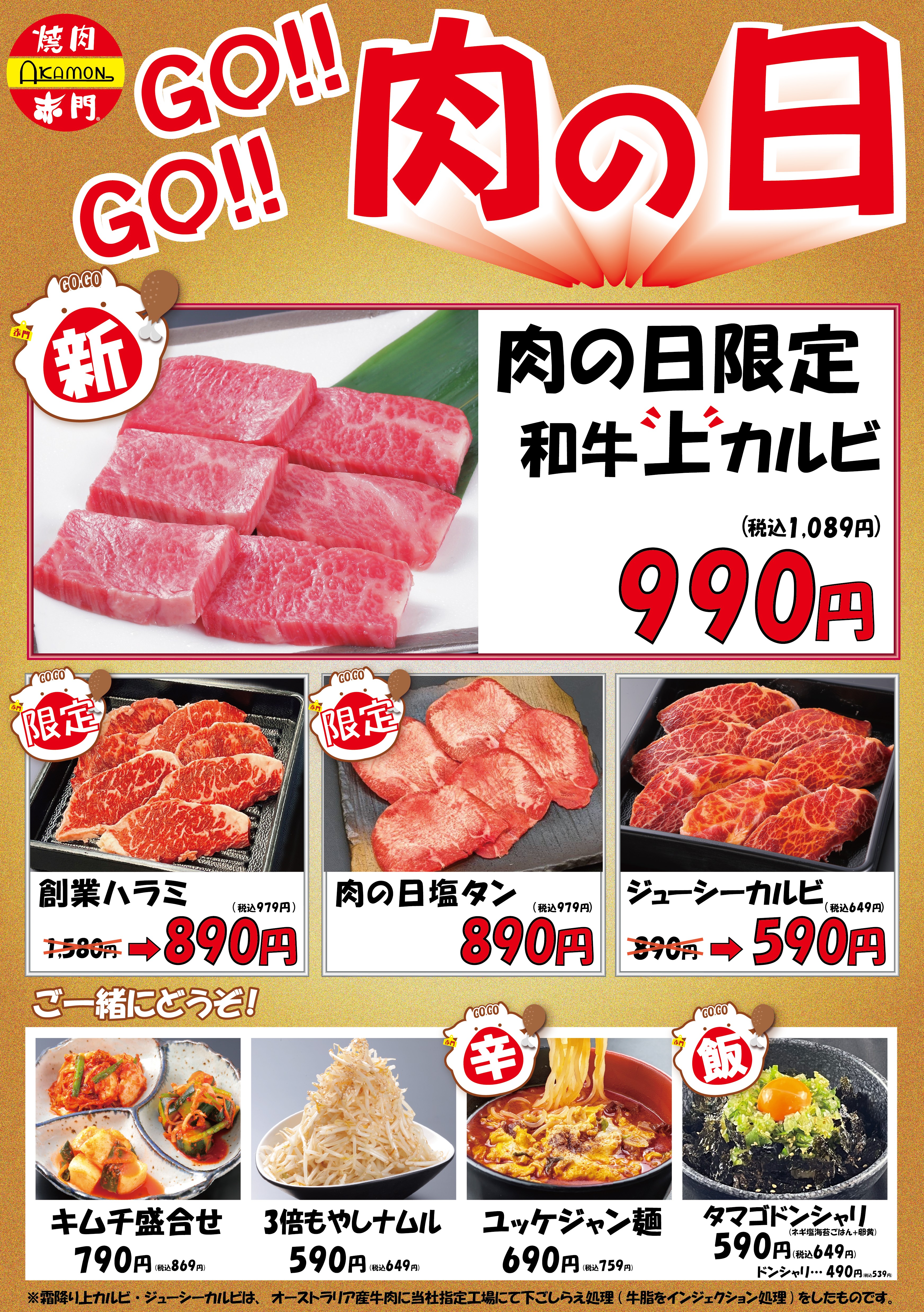 11月にGOGO肉の日開催!〈開催期間〉11月25日(火)~11月30日(日)の6日間!この期間にしかない安くて、うまいメニューが勢ぞろい!お腹いっぱいで満足すること間違いなし!ご来店お待ちしております!