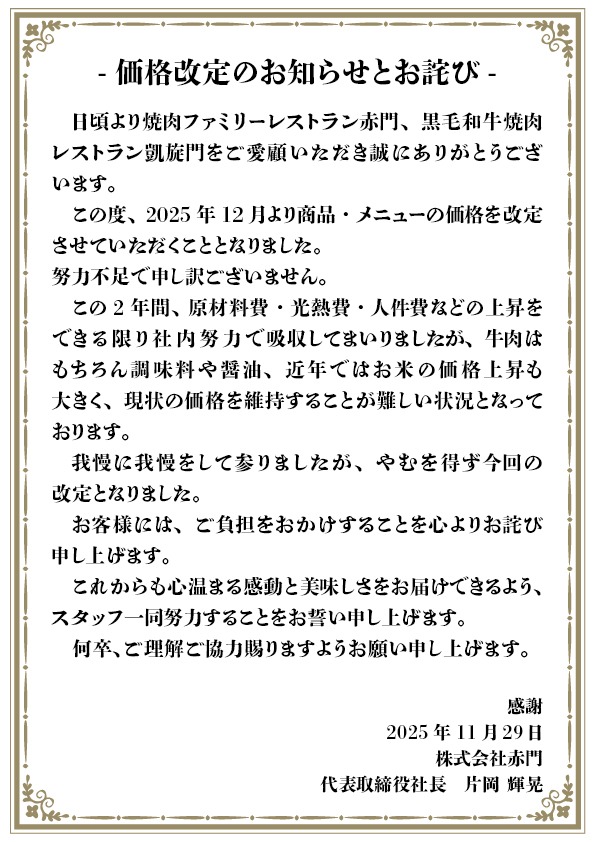 【大切なお客様へ】価格改定のお知らせとお詫び