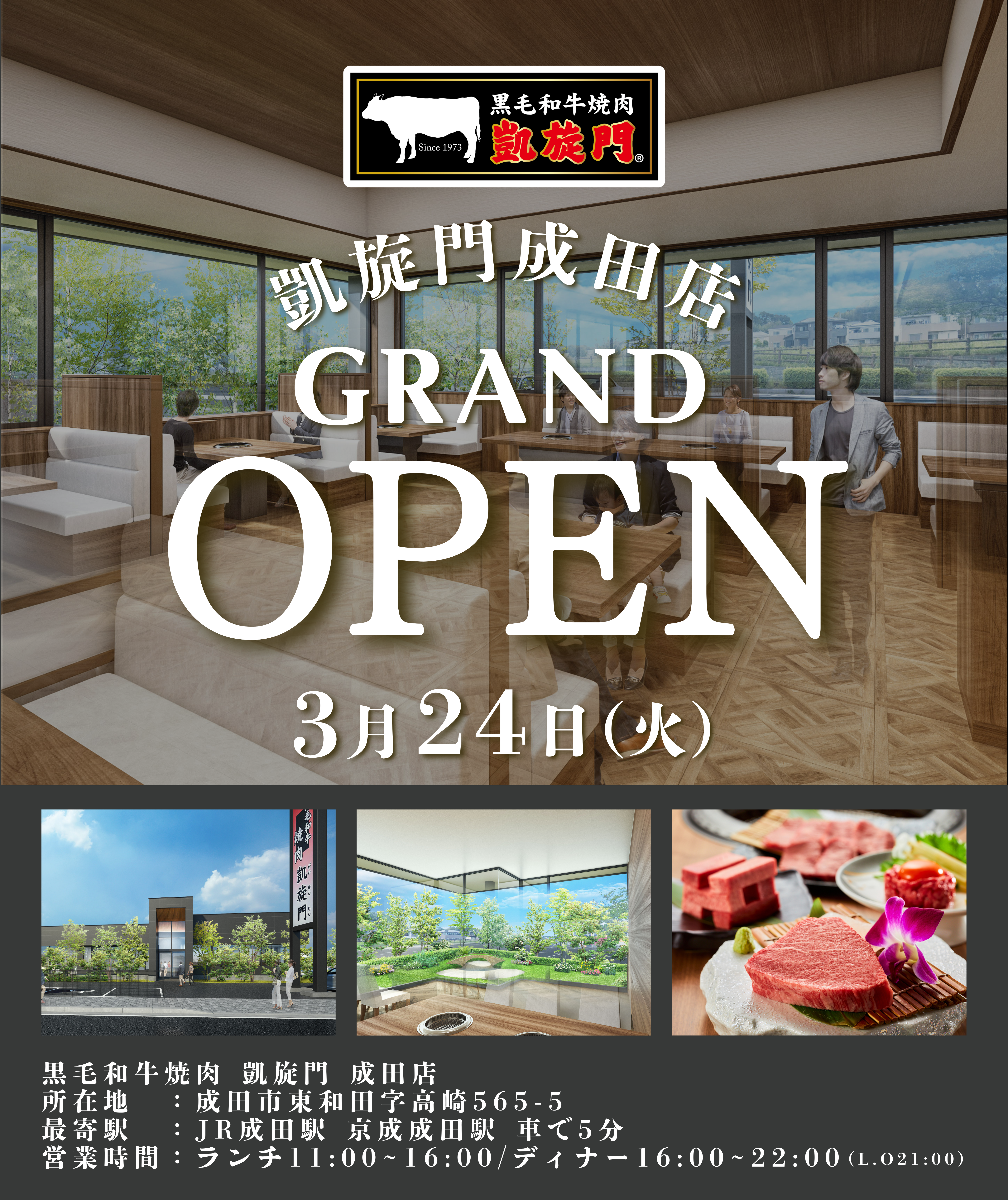 黒毛和牛焼肉 凱旋門 成田店:3月24(火)GRAND OPEN予定