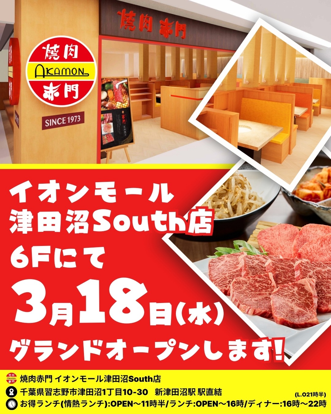この度、イオンモール津田沼South店6Fに焼肉赤門がグランドオープンいたします!