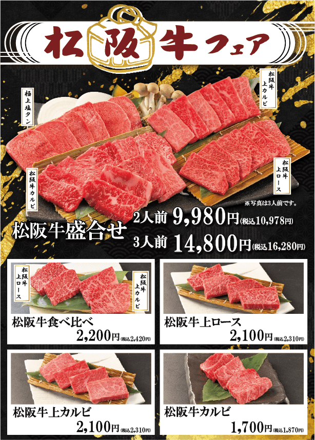 日本三大和牛である松坂牛が今なら凱旋門で味わえます!肉質がきめ細かく、霜降りが豊富で、口に入れた瞬間とろけるような食感が特徴です!